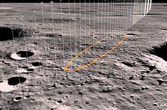 The crater Maskelyne W, which will be a position check at 3 min. 39 sec. into descent, the point we will turn the lander over on its back, our windows facing up into the darkness of space so that the landing radar can lock on the surface.