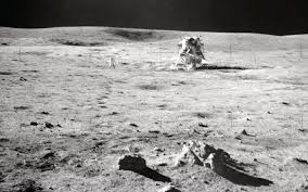 “We could spend the entire EVA within a hundred yards of the LM” — there’s so much to sample. “Houston, this looks like brown talcum powder, it’s so fine, in most places.”