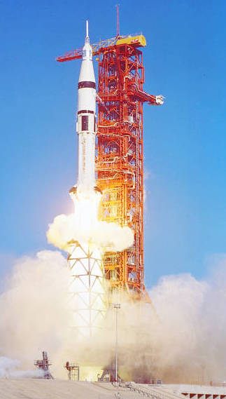 We were set to fly on November 10. That is, until four days before the launch date when final inspection of our seven-year old Saturn IB booster were conducted. Technicians discovered hairline cracks in the tail fins, all eight fins. Two had one crack, six had two cracks, the largest 1.5 in. long. The fins had to be replaced on the pad, delaying the flight. Now we’re set for launch at 9:01 a.m. (EST).