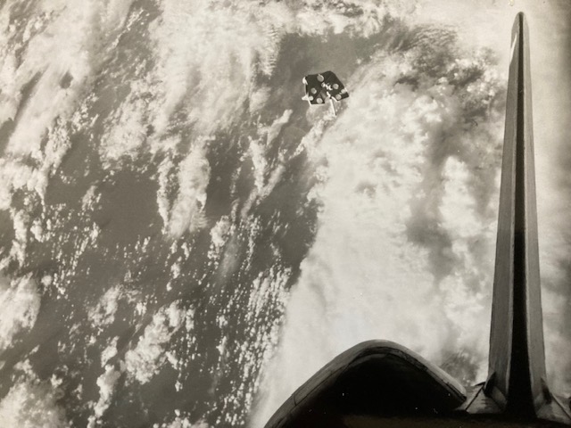 It’s tag-team flying, and now it’s Bob turn to make some practice dockings, using the other MMU. He calls, “OK, there’s a good soft dock.” and then backs off.